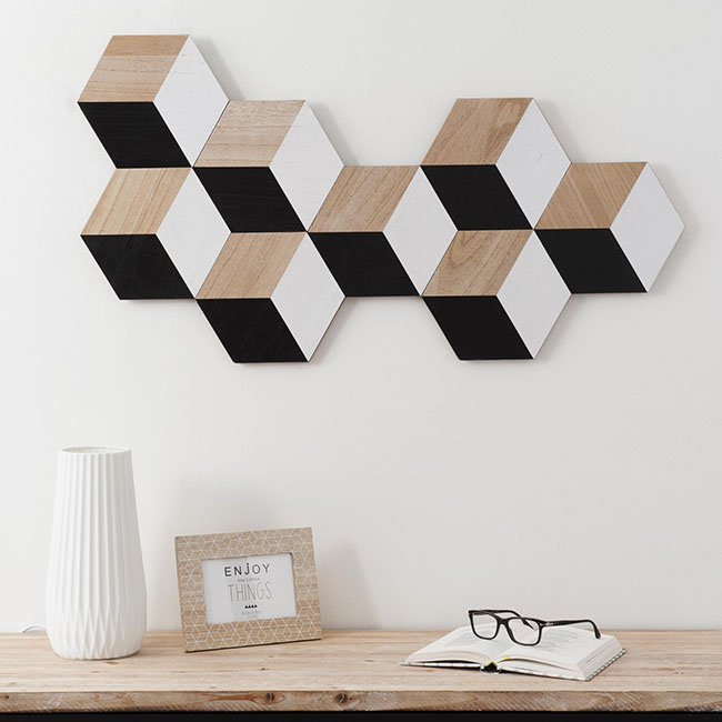 Una decorazione con gli esagoni (ve ne ho già parlato come uno dei trend del momento) che mi piace tantissimo e di seguitola mia personale wish list degli oggetti che mi piacciono.